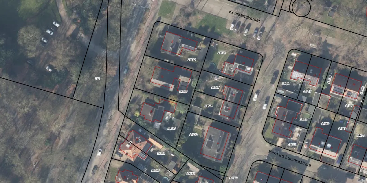 Gebruik de zoekbalk of klik op een perceel om informatie over het perceel te bekijken.