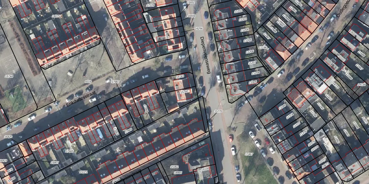 Gebruik de zoekbalk of klik op een perceel om informatie over het perceel te bekijken.