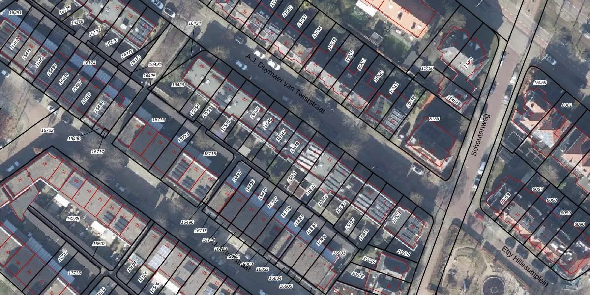 Gebruik de zoekbalk of klik op een perceel om informatie over het perceel te bekijken.