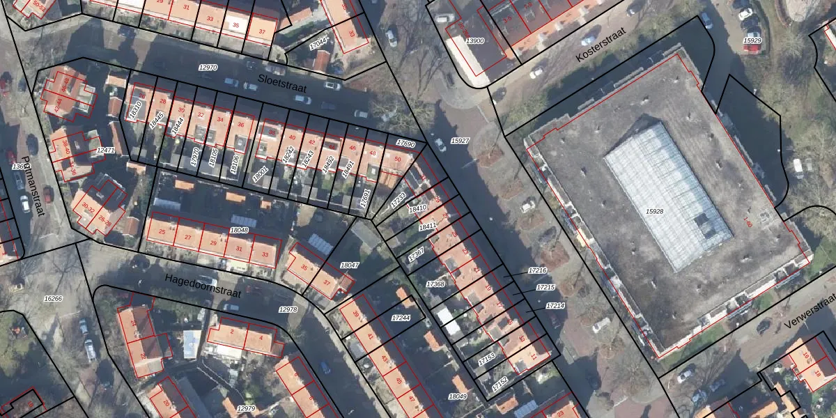 Gebruik de zoekbalk of klik op een perceel om informatie over het perceel te bekijken.