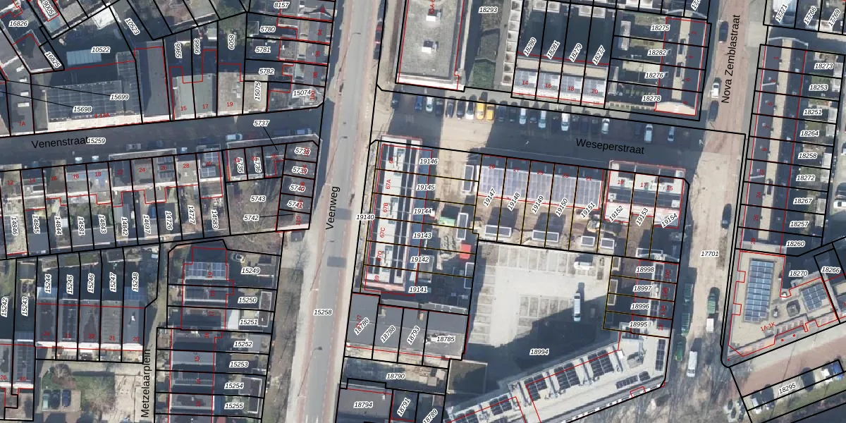 Gebruik de zoekbalk of klik op een perceel om informatie over het perceel te bekijken.