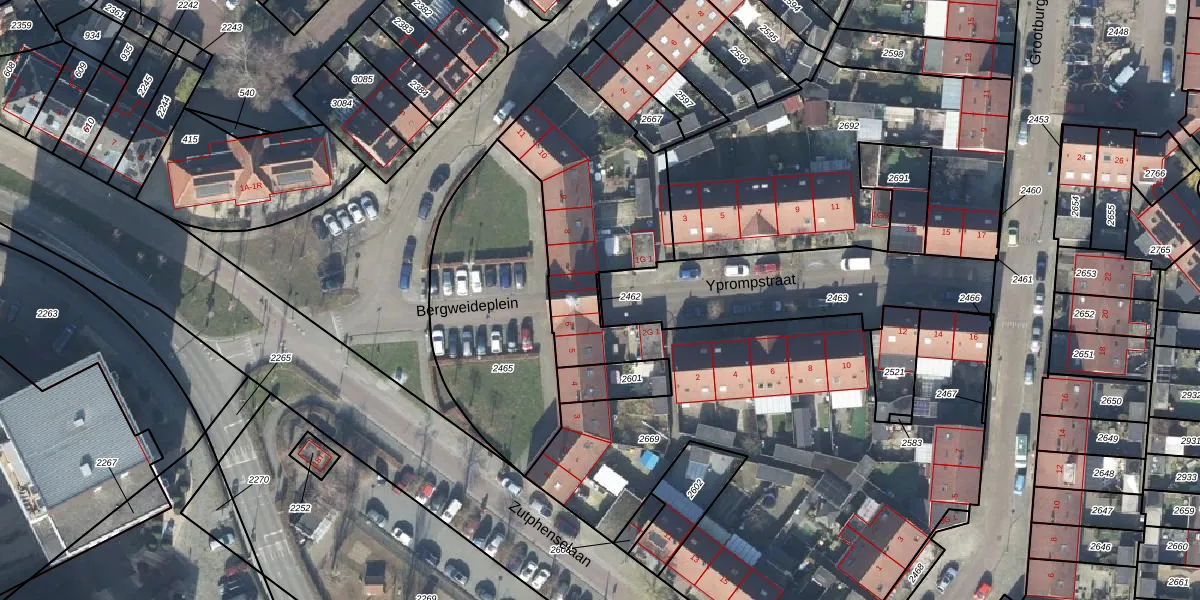 Gebruik de zoekbalk of klik op een perceel om informatie over het perceel te bekijken.