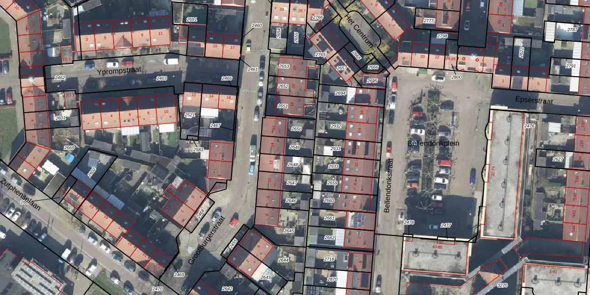 Gebruik de zoekbalk of klik op een perceel om informatie over het perceel te bekijken.