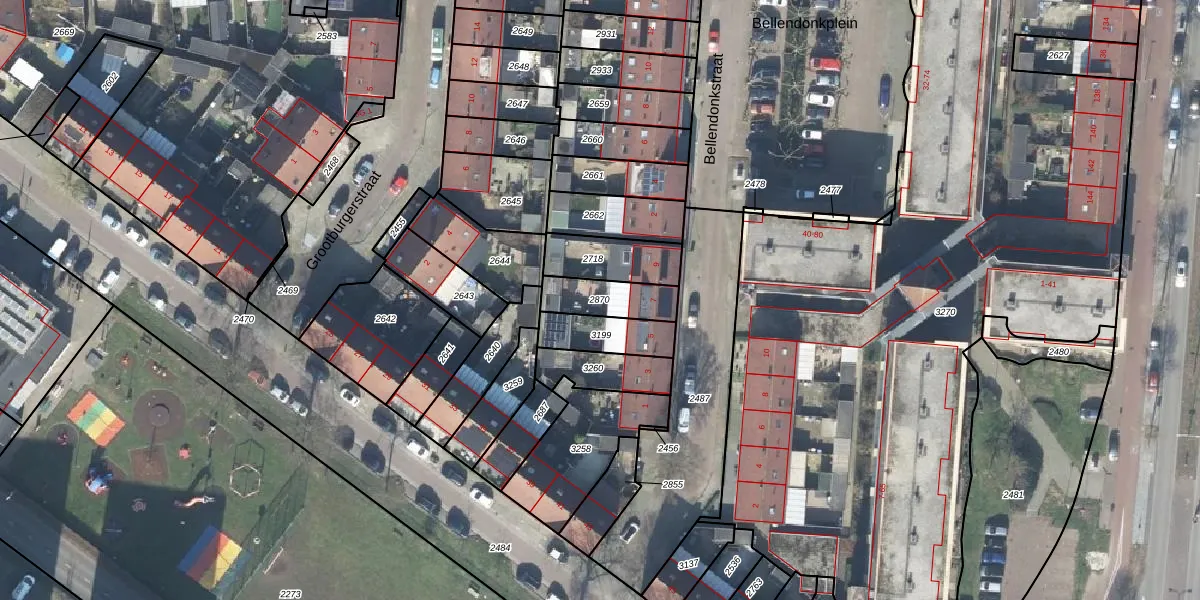 Gebruik de zoekbalk of klik op een perceel om informatie over het perceel te bekijken.