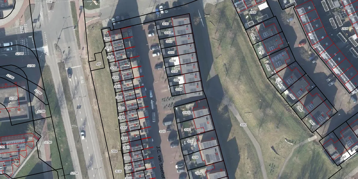 Gebruik de zoekbalk of klik op een perceel om informatie over het perceel te bekijken.