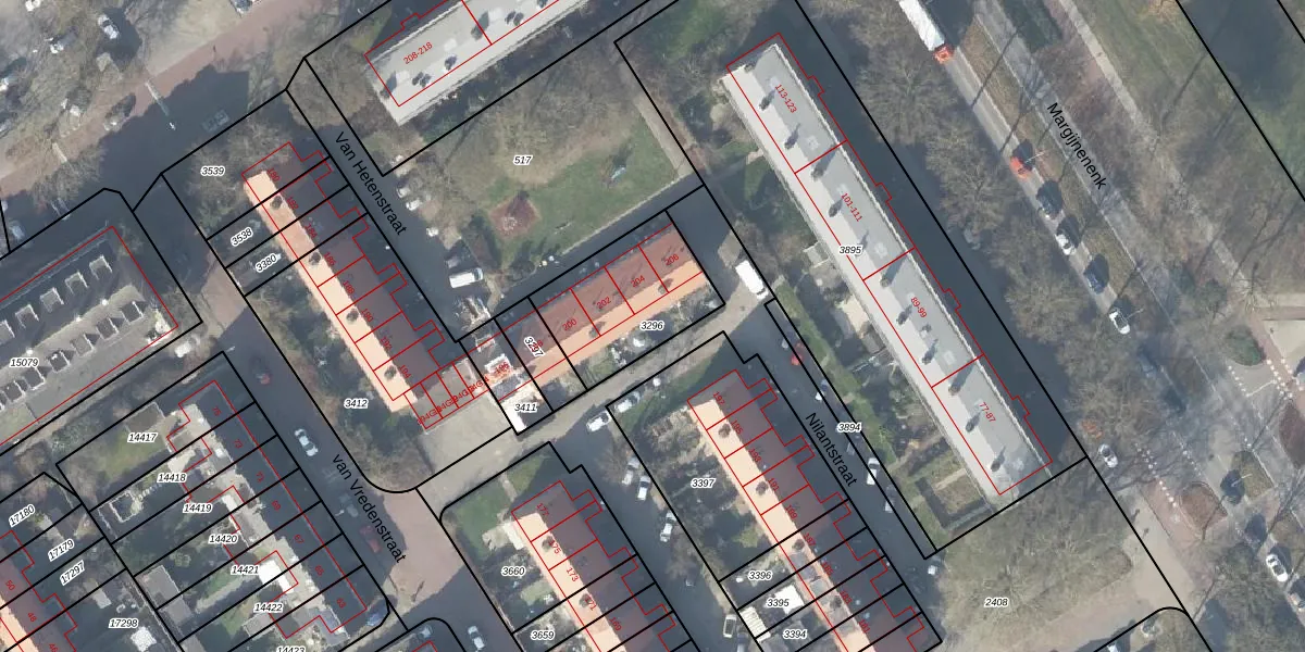 Gebruik de zoekbalk of klik op een perceel om informatie over het perceel te bekijken.