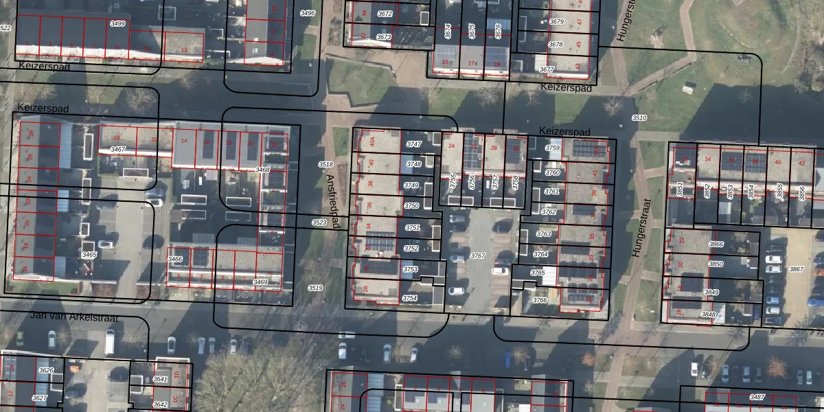 Gebruik de zoekbalk of klik op een perceel om informatie over het perceel te bekijken.