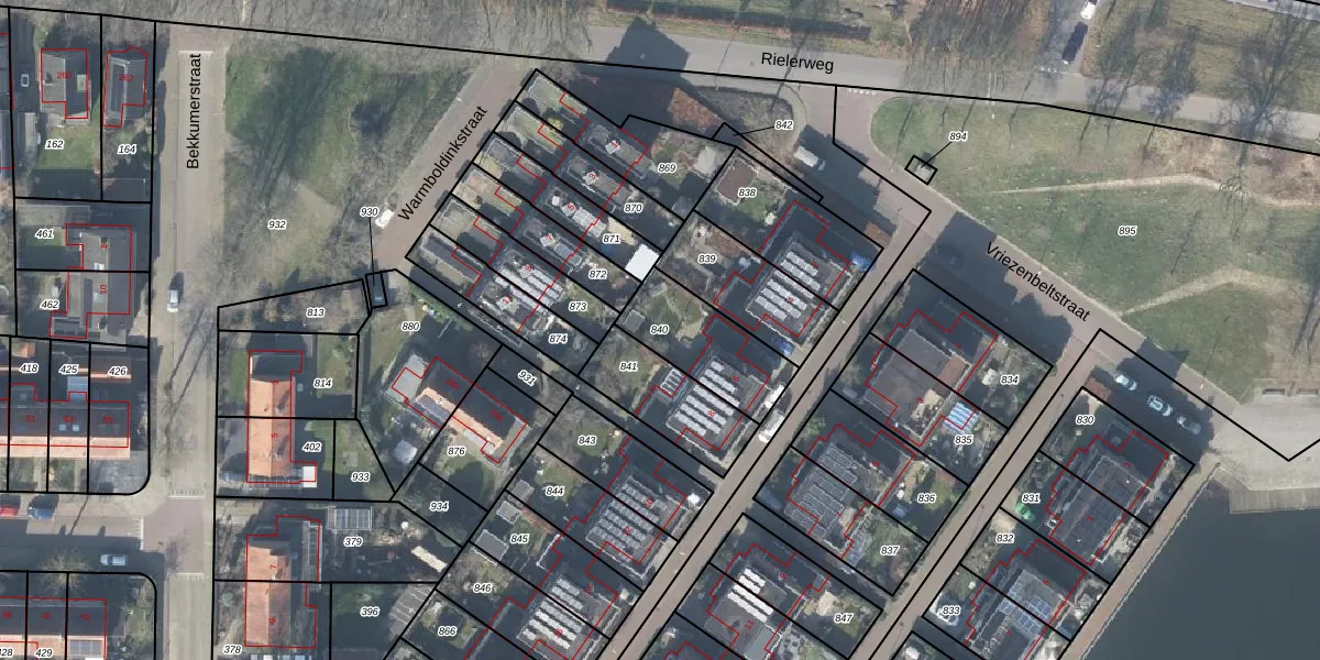 Gebruik de zoekbalk of klik op een perceel om informatie over het perceel te bekijken.
