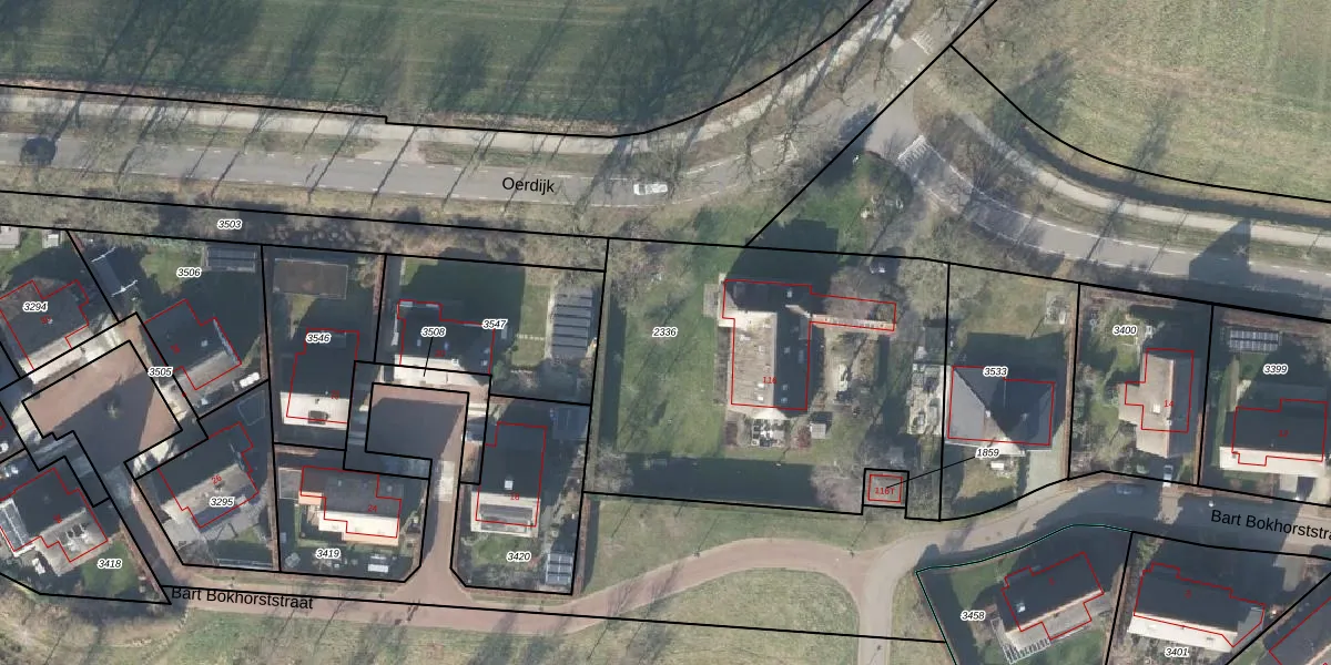 Gebruik de zoekbalk of klik op een perceel om informatie over het perceel te bekijken.