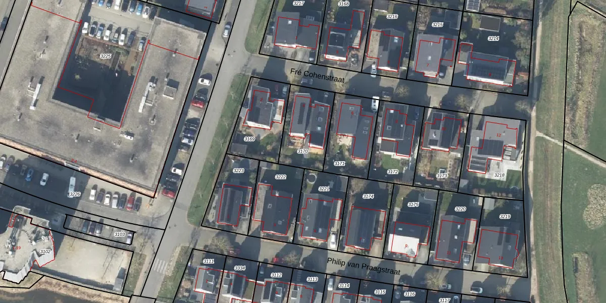 Gebruik de zoekbalk of klik op een perceel om informatie over het perceel te bekijken.