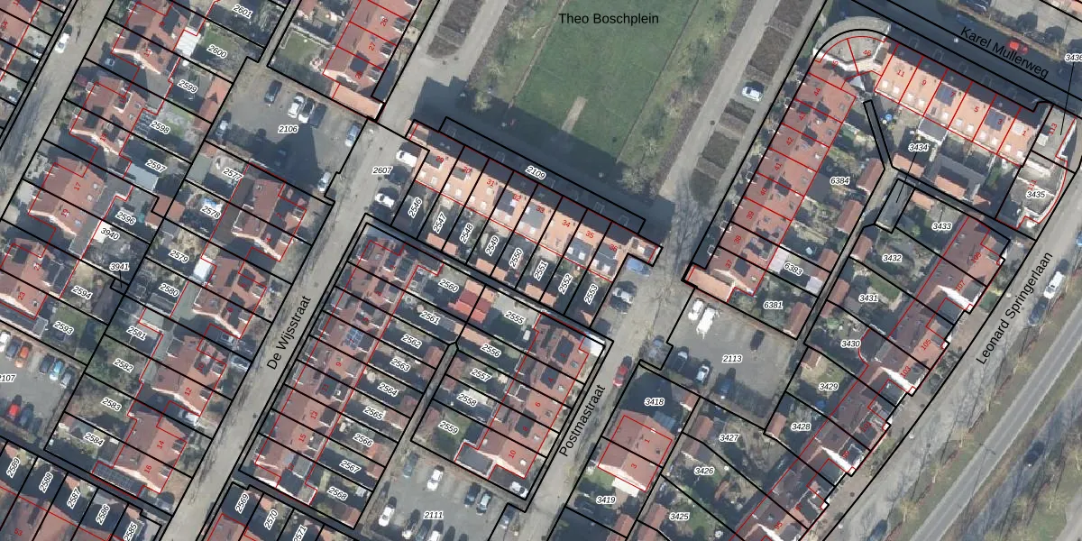 Gebruik de zoekbalk of klik op een perceel om informatie over het perceel te bekijken.