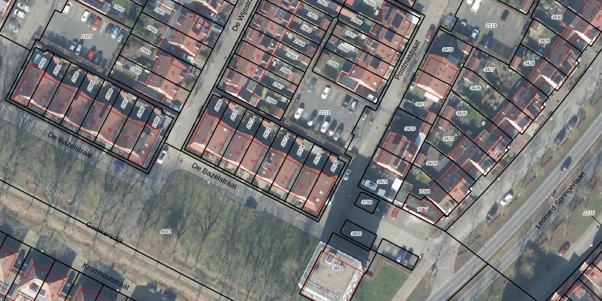 Gebruik de zoekbalk of klik op een perceel om informatie over het perceel te bekijken.