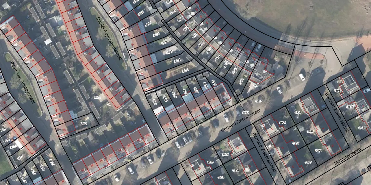 Gebruik de zoekbalk of klik op een perceel om informatie over het perceel te bekijken.
