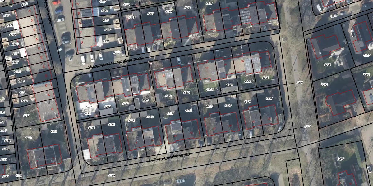Gebruik de zoekbalk of klik op een perceel om informatie over het perceel te bekijken.
