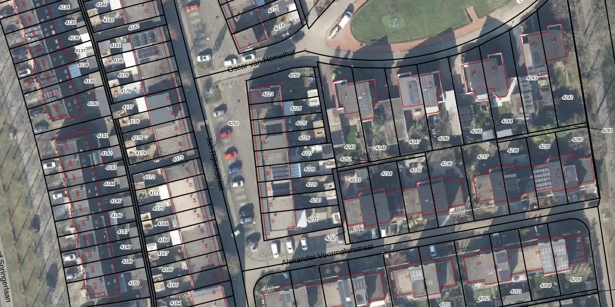 Gebruik de zoekbalk of klik op een perceel om informatie over het perceel te bekijken.