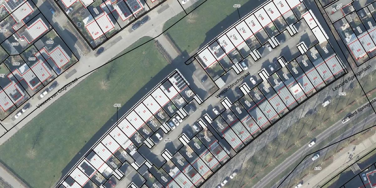 Gebruik de zoekbalk of klik op een perceel om informatie over het perceel te bekijken.