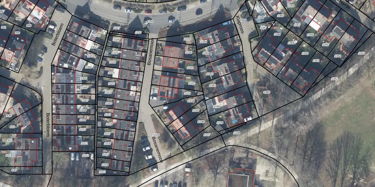 Gebruik de zoekbalk of klik op een perceel om informatie over het perceel te bekijken.