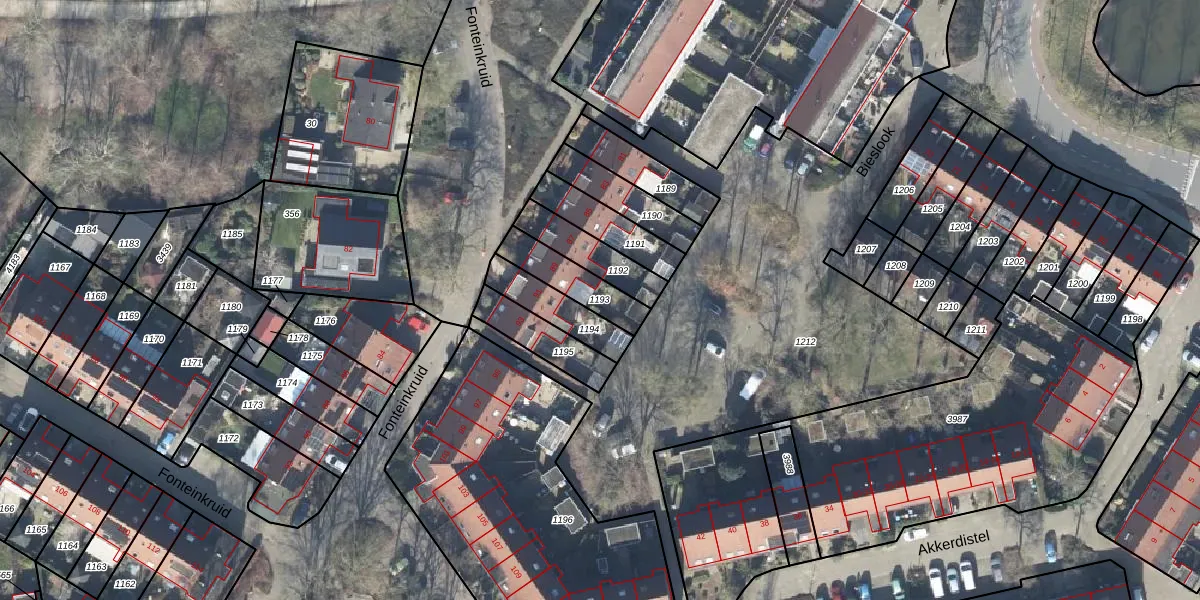 Gebruik de zoekbalk of klik op een perceel om informatie over het perceel te bekijken.