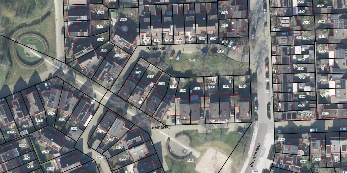 Gebruik de zoekbalk of klik op een perceel om informatie over het perceel te bekijken.