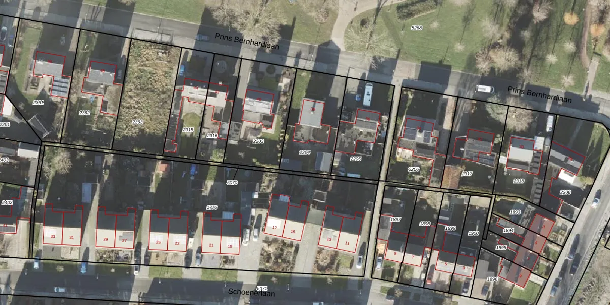 Gebruik de zoekbalk of klik op een perceel om informatie over het perceel te bekijken.