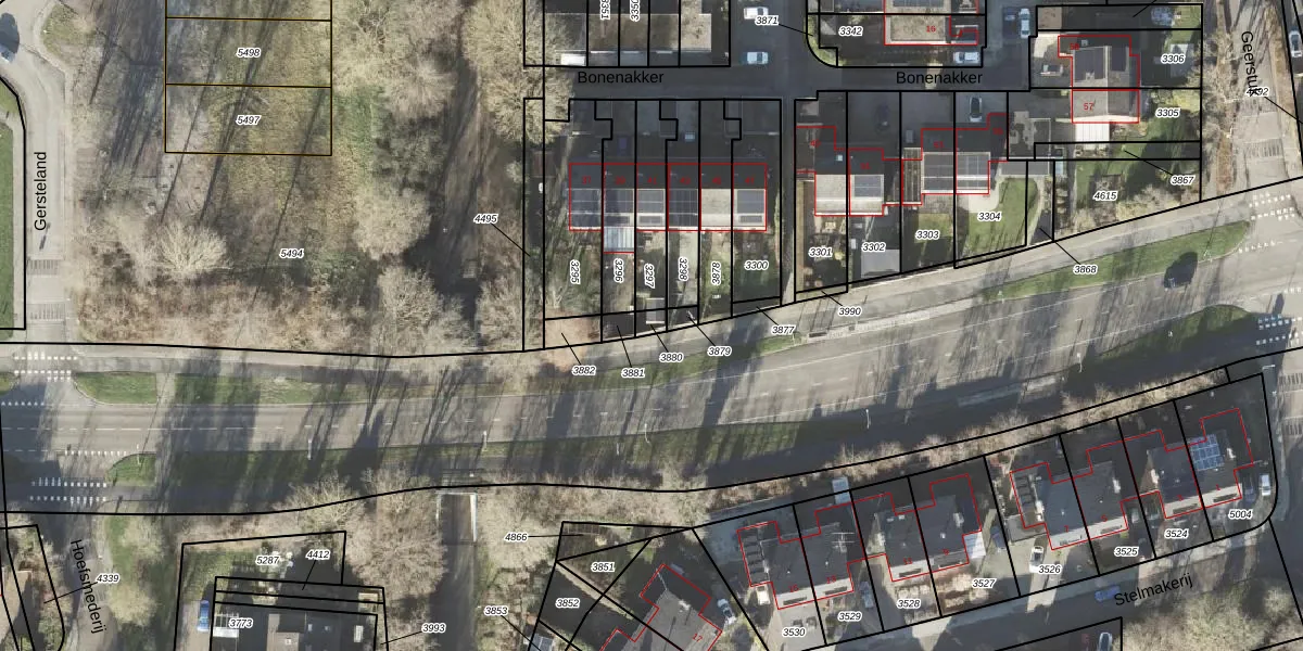 Gebruik de zoekbalk of klik op een perceel om informatie over het perceel te bekijken.
