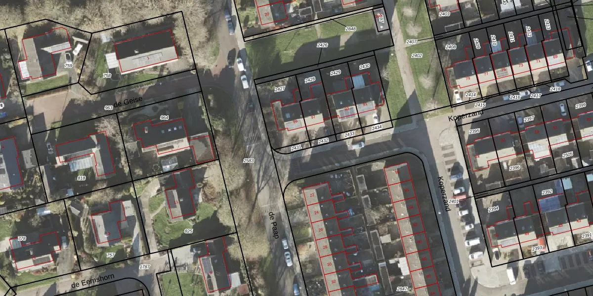 Gebruik de zoekbalk of klik op een perceel om informatie over het perceel te bekijken.