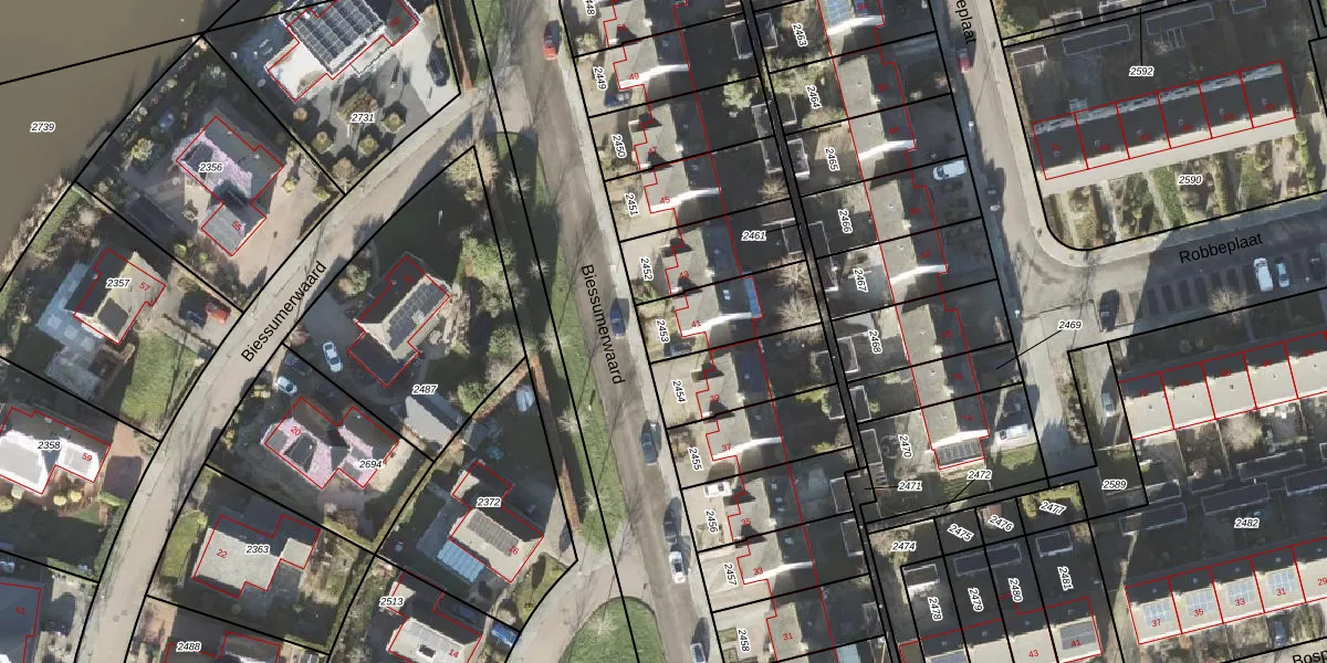 Gebruik de zoekbalk of klik op een perceel om informatie over het perceel te bekijken.