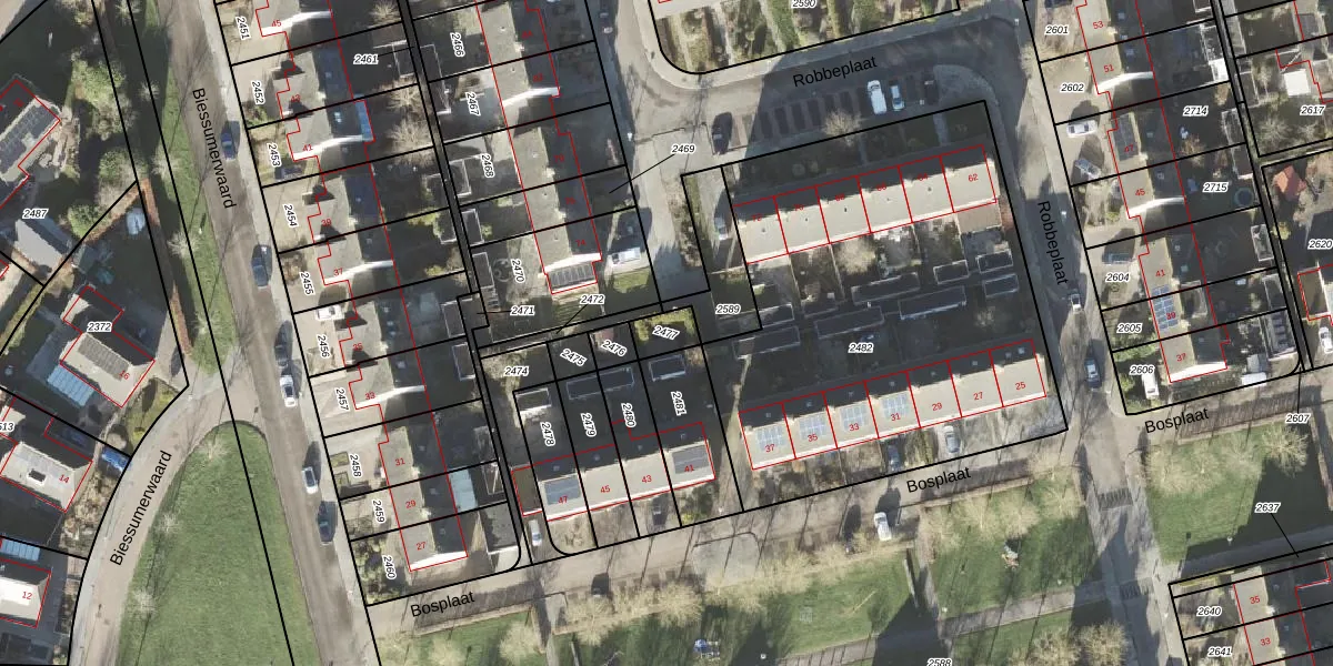 Gebruik de zoekbalk of klik op een perceel om informatie over het perceel te bekijken.