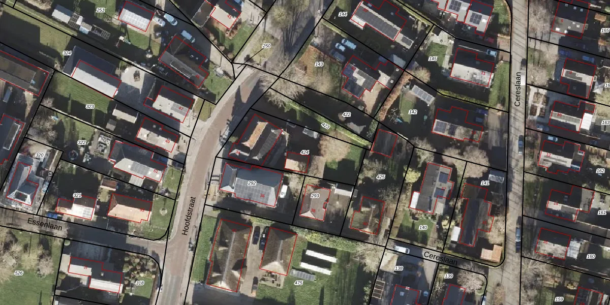 Gebruik de zoekbalk of klik op een perceel om informatie over het perceel te bekijken.