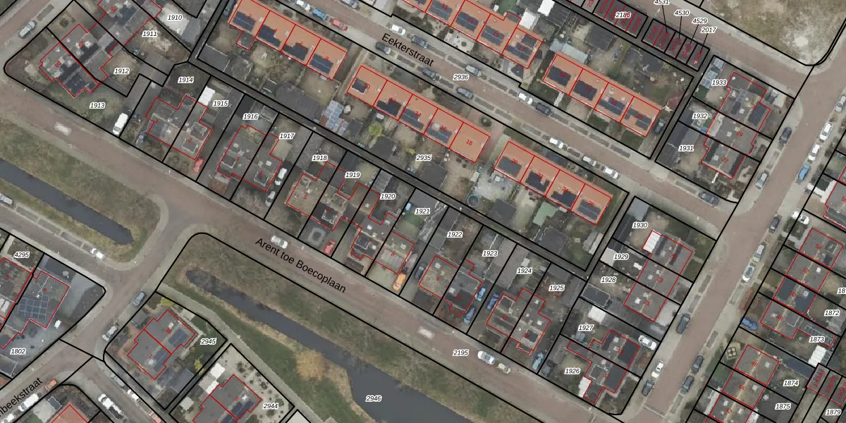 Gebruik de zoekbalk of klik op een perceel om informatie over het perceel te bekijken.