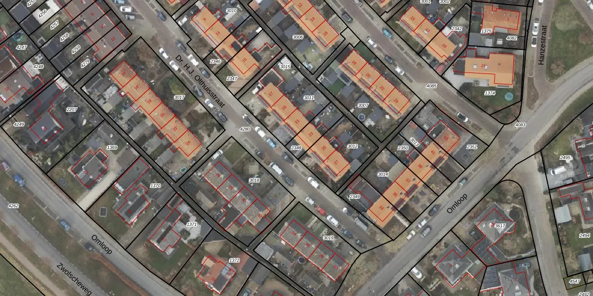 Gebruik de zoekbalk of klik op een perceel om informatie over het perceel te bekijken.