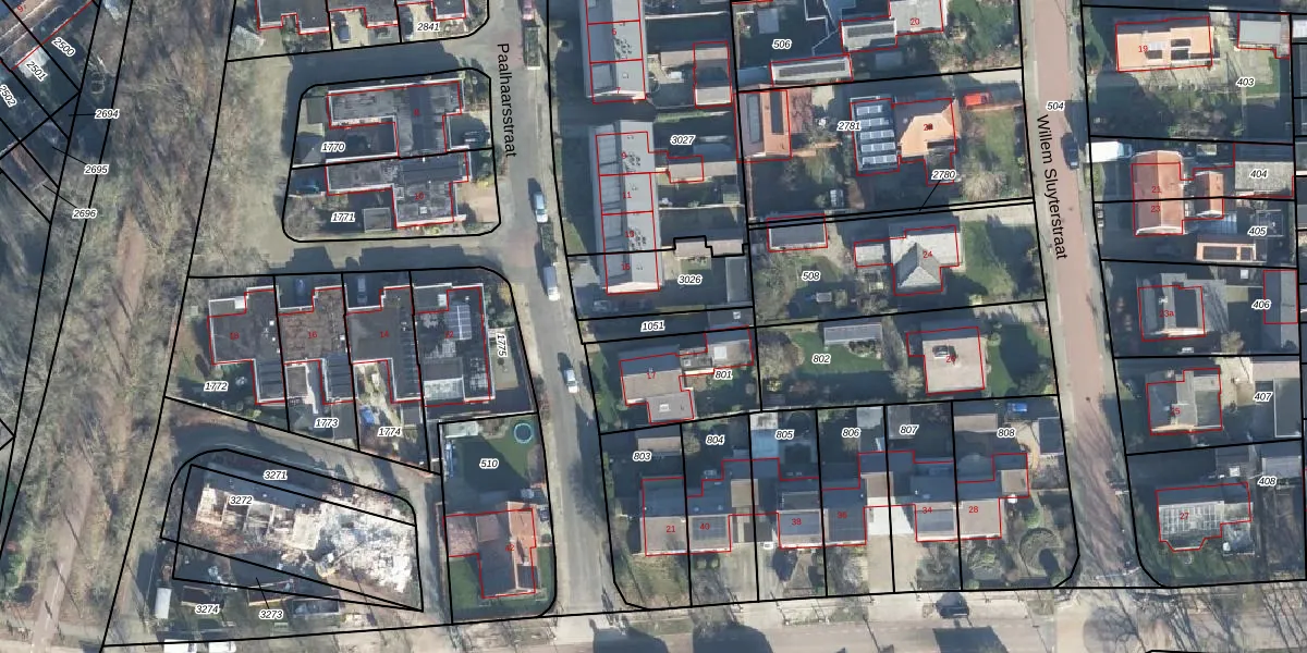 Gebruik de zoekbalk of klik op een perceel om informatie over het perceel te bekijken.