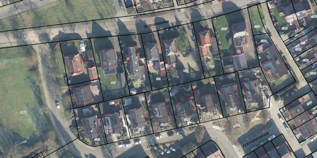 Gebruik de zoekbalk of klik op een perceel om informatie over het perceel te bekijken.