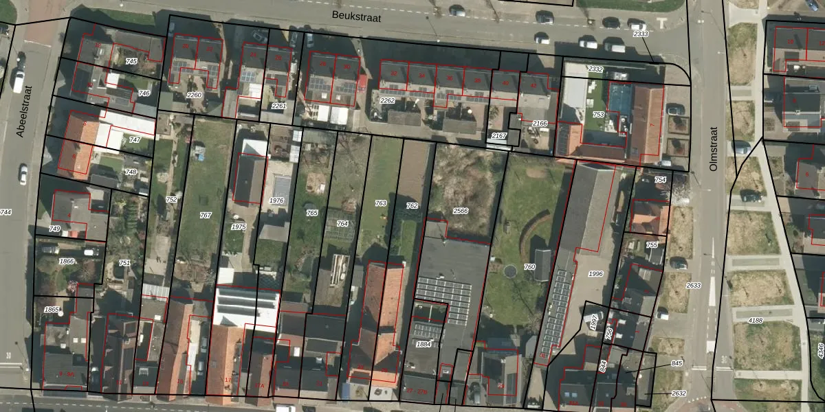 Gebruik de zoekbalk of klik op een perceel om informatie over het perceel te bekijken.
