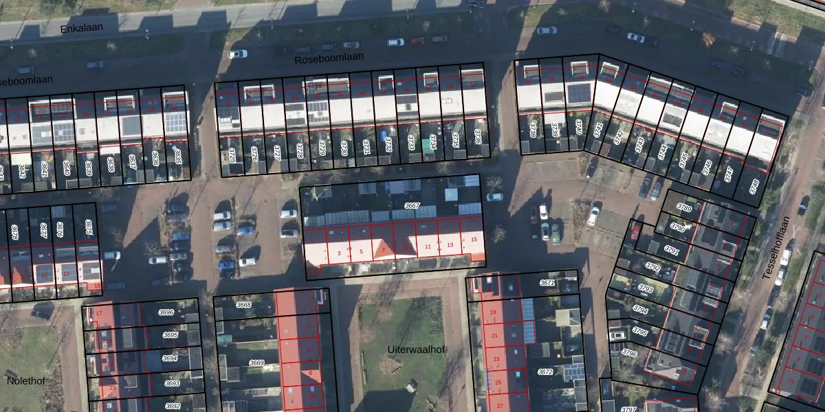 Gebruik de zoekbalk of klik op een perceel om informatie over het perceel te bekijken.