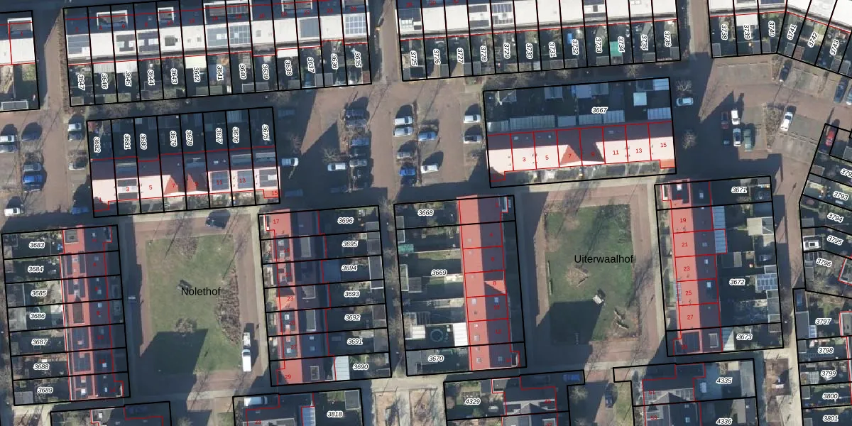 Gebruik de zoekbalk of klik op een perceel om informatie over het perceel te bekijken.