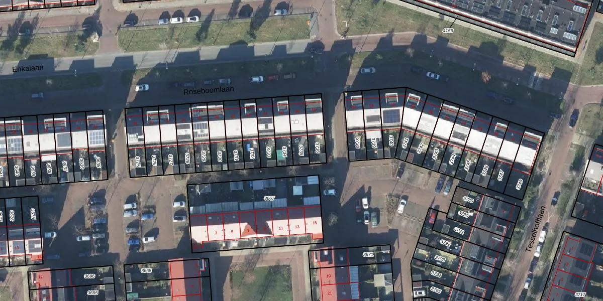 Gebruik de zoekbalk of klik op een perceel om informatie over het perceel te bekijken.