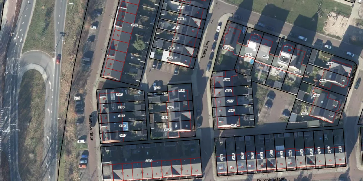 Gebruik de zoekbalk of klik op een perceel om informatie over het perceel te bekijken.