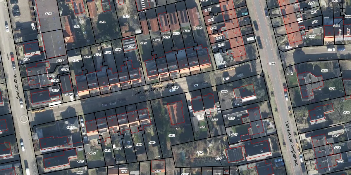 Gebruik de zoekbalk of klik op een perceel om informatie over het perceel te bekijken.