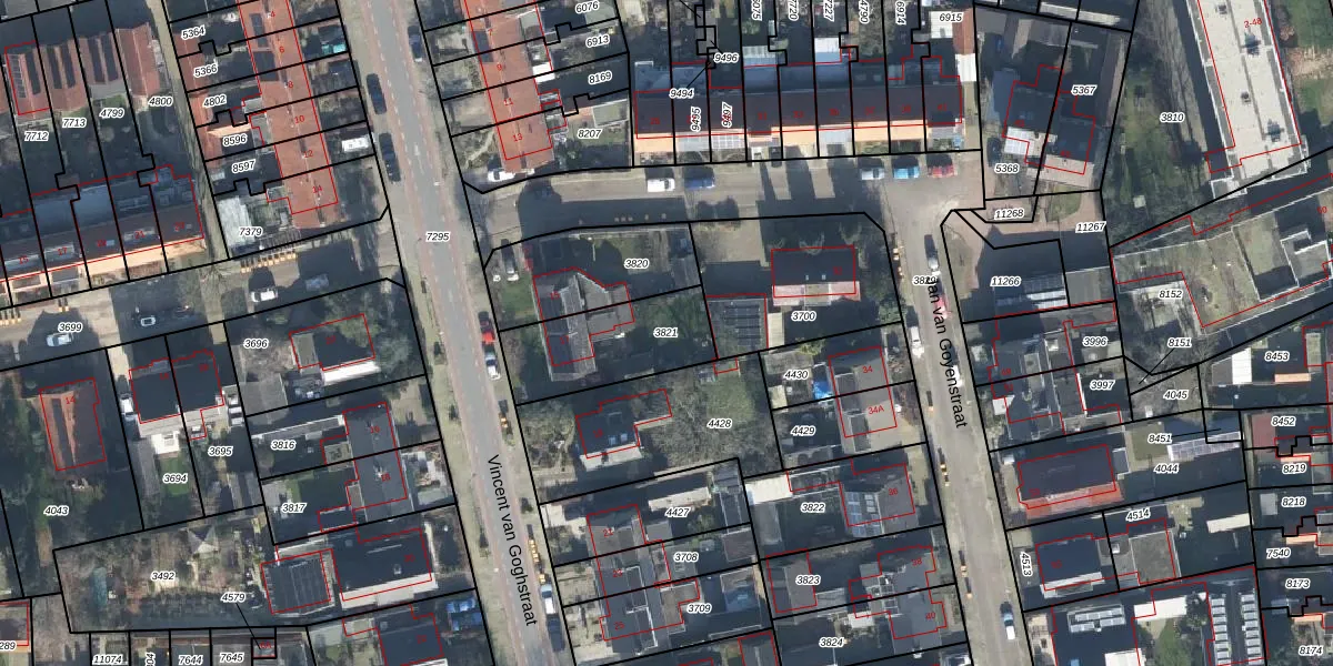 Gebruik de zoekbalk of klik op een perceel om informatie over het perceel te bekijken.