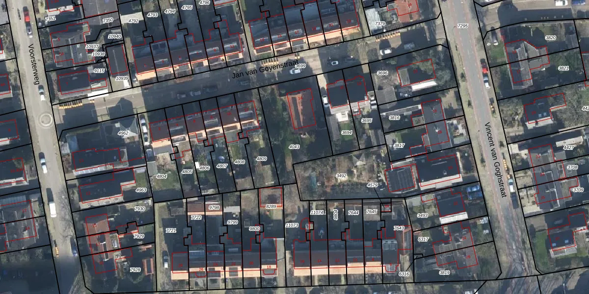 Gebruik de zoekbalk of klik op een perceel om informatie over het perceel te bekijken.