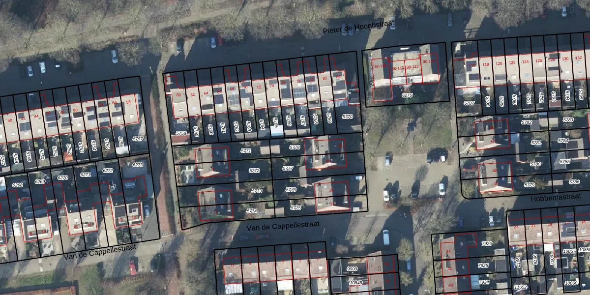 Gebruik de zoekbalk of klik op een perceel om informatie over het perceel te bekijken.