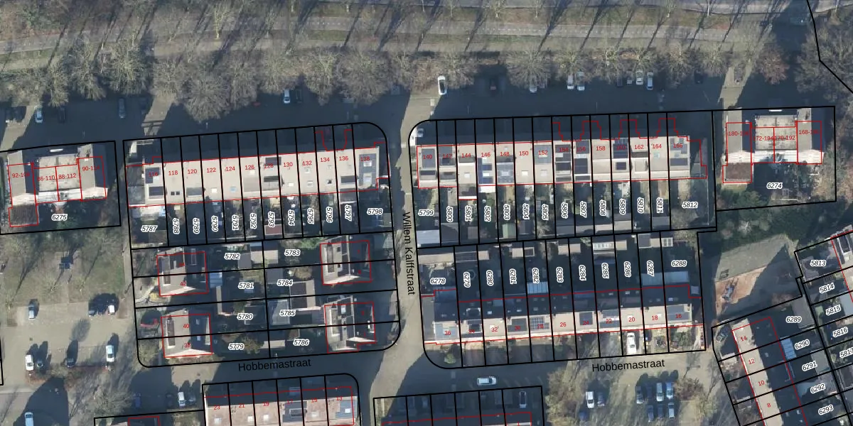 Gebruik de zoekbalk of klik op een perceel om informatie over het perceel te bekijken.