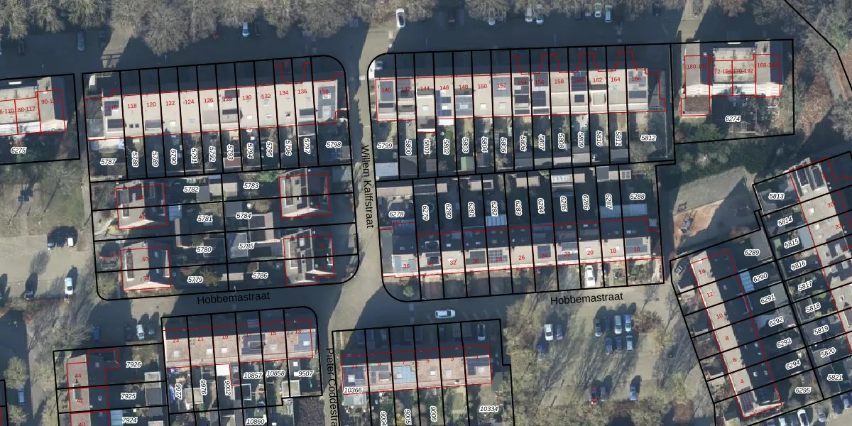 Gebruik de zoekbalk of klik op een perceel om informatie over het perceel te bekijken.