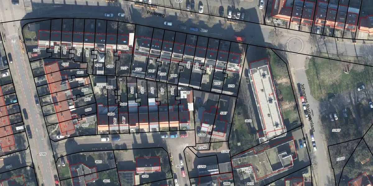 Gebruik de zoekbalk of klik op een perceel om informatie over het perceel te bekijken.