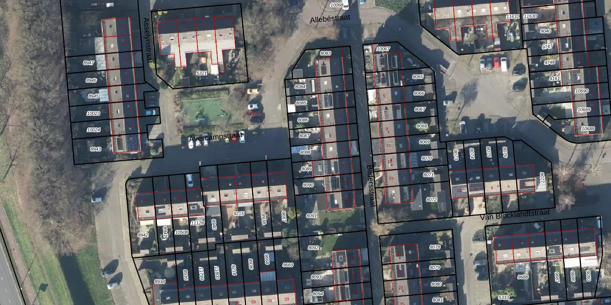 Gebruik de zoekbalk of klik op een perceel om informatie over het perceel te bekijken.