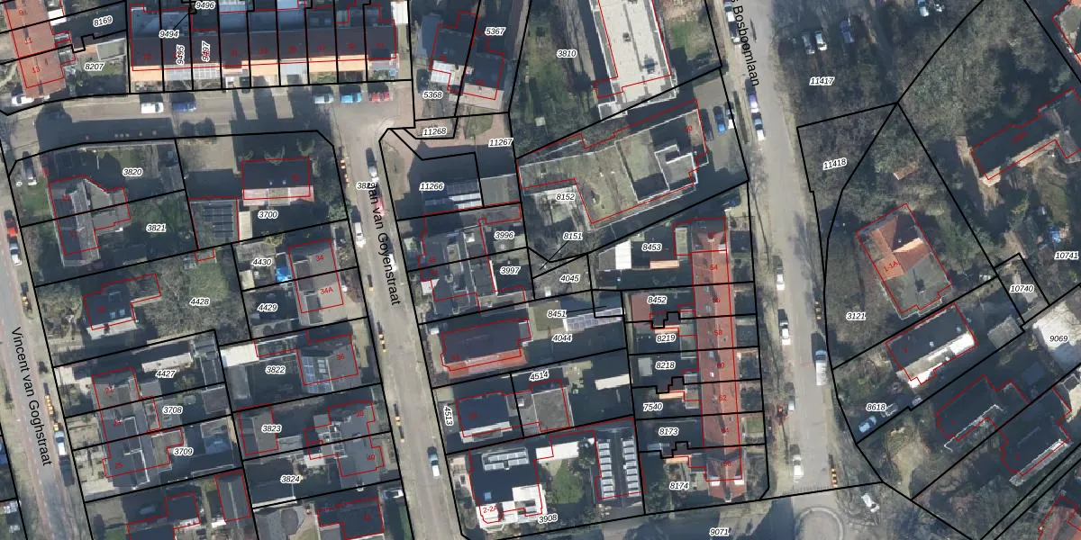 Gebruik de zoekbalk of klik op een perceel om informatie over het perceel te bekijken.
