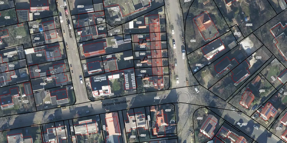 Gebruik de zoekbalk of klik op een perceel om informatie over het perceel te bekijken.