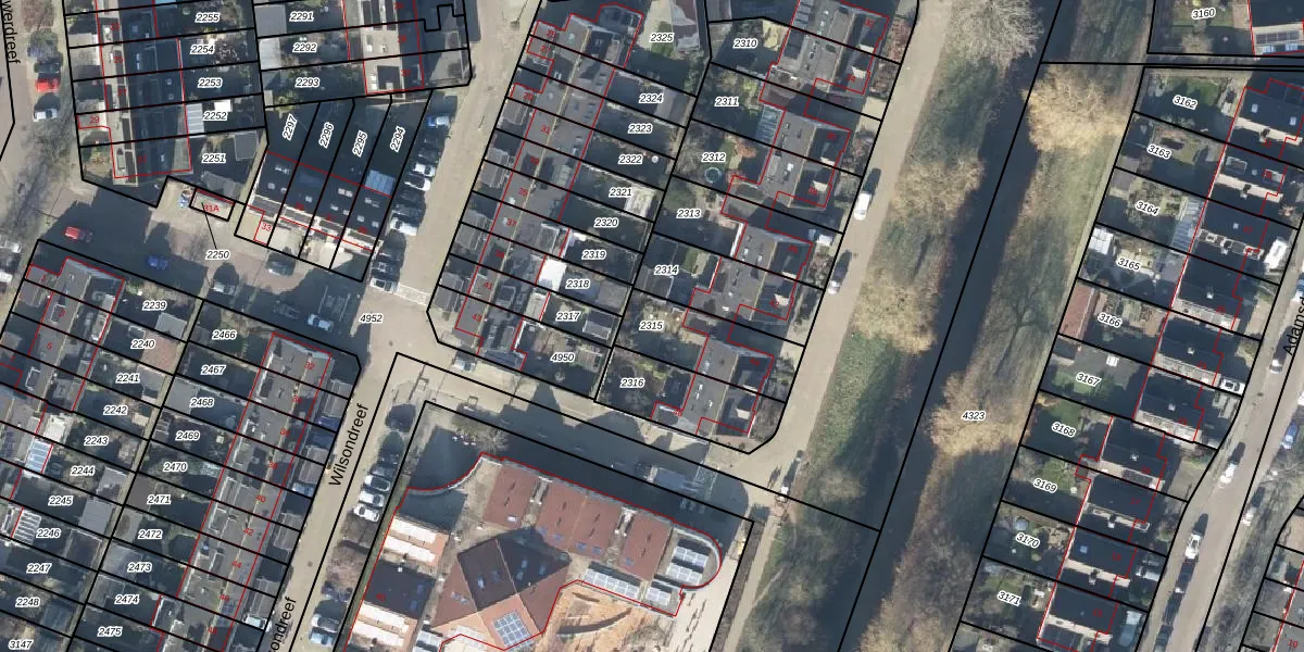 Gebruik de zoekbalk of klik op een perceel om informatie over het perceel te bekijken.