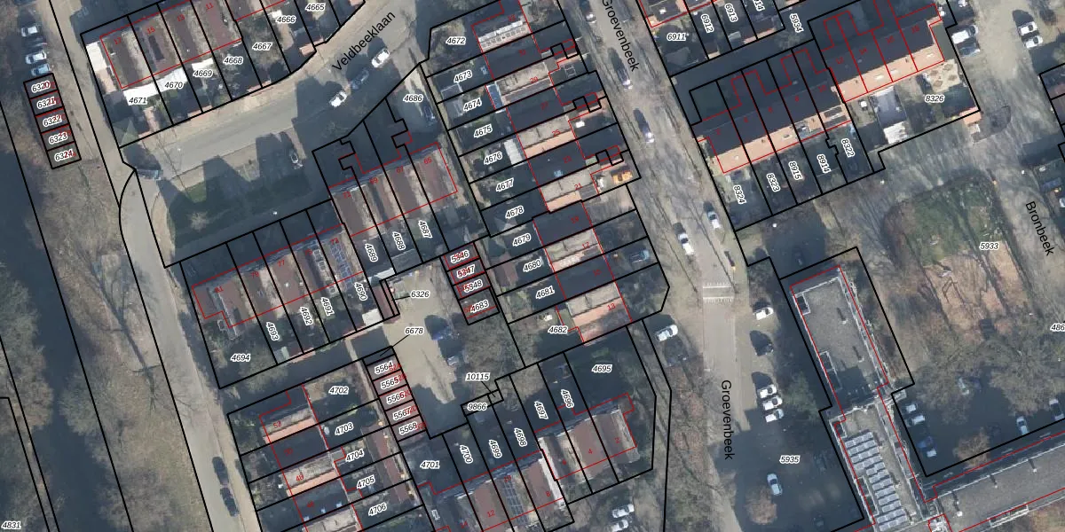 Gebruik de zoekbalk of klik op een perceel om informatie over het perceel te bekijken.